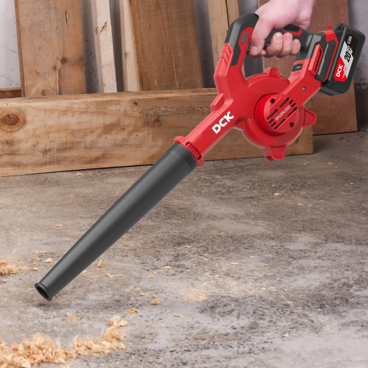 Аккумуляторный воздуходув DCK KDQF32 (TYPE BM) — универсальный инструмент, который пригодится не только на садовом участке, но и в мастерской или на стройке. Он помогает быстро очистить рабочее место, убрать мусор, продуть инструмент или оборудование, особенно когда под рукой нет компрессора.